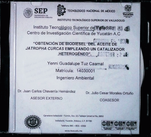Obtención de biodiesel del aceite de Jatropha curcas empleando un catalizador heterogéneo [recurso electrónico] / Yenni Guadalupe Tuz Caamal