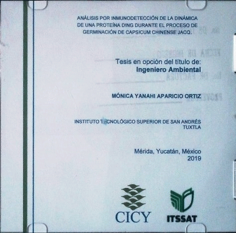 Análisis por inmunodetección de la dinámica de una proteína DING durante el proceso de germinación de Capsicum chinense Jacq. [recurso electrónico] / Mónica Yanahi Aparicio Ortiz