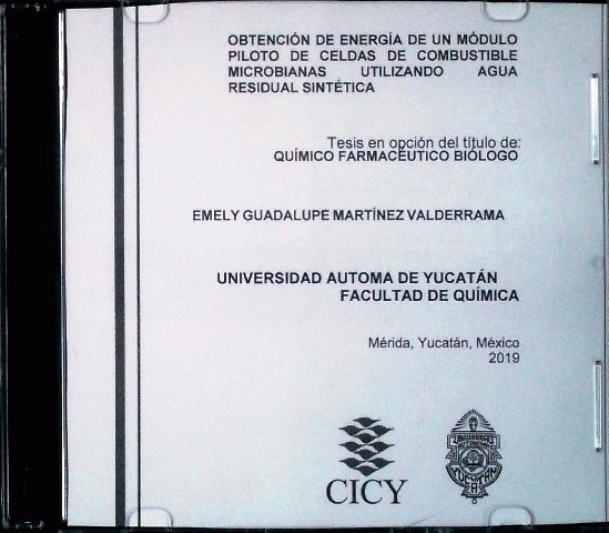 Obtención de energía de un módulo piloto de celdas de combustible microbianas utilizando agua residual sintética [recurso electrónico] / Emely Guadalupe Martínez Valderrama