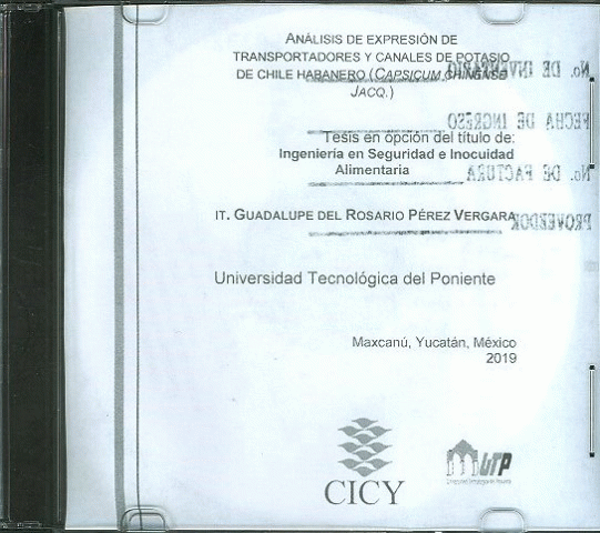 Análisis de expresión de transportadores y canales de potasio de chile habanero (Capsicum chinense Jacq.) [recurso electrónico] / Guadalupe del Rosario Pérez Vergara