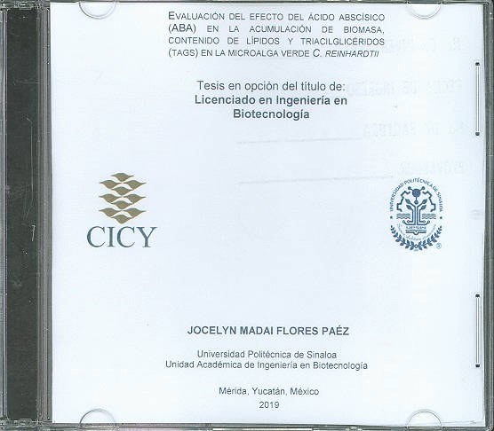 Evaluación del efecto del ácido abscísico (ABA) en la acumulación de biomasa, contenido de lípidos y triacilglicéridos (TAGS) en la microalga verde C. reinhardtii [recurso electrónico] / Jocelyn Madai Flores Paéz