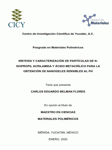 Síntesis y caracterización de partículas de N-isopropil acrilamida y ácido metacrílico para la obtención de nanogeles sensibles al PH [recurso electrónico] / Carlos Eduardo Belman Flores