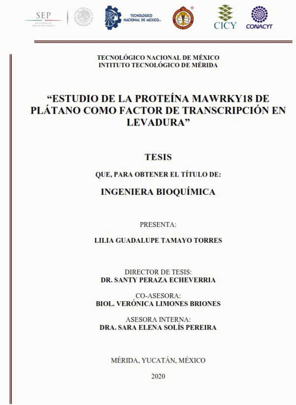 Estudio de la proteína mawrky18 de plátano como factor de transcripción en levadura [recurso electrónico] / Lilia Guadalupe Tamayo Torres